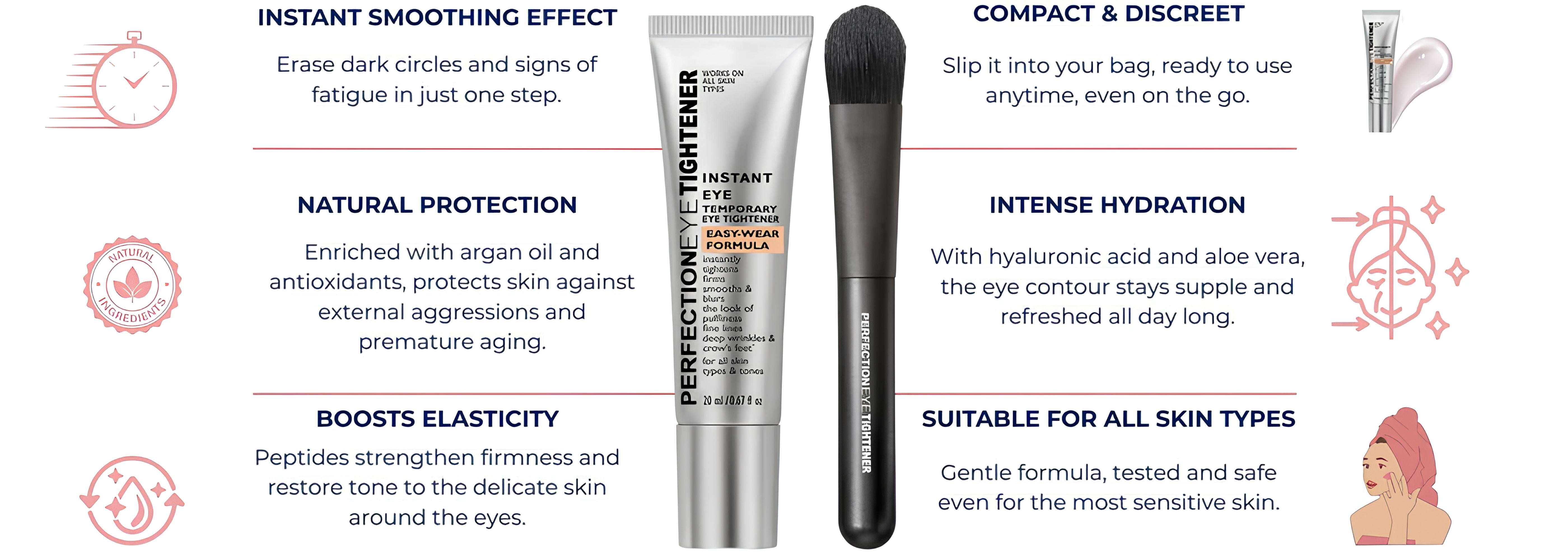 “Perfection Eye Tightener has transformed my beauty routine — my skin feels firmer and more radiant, with visible tightening results in just seconds after application.”